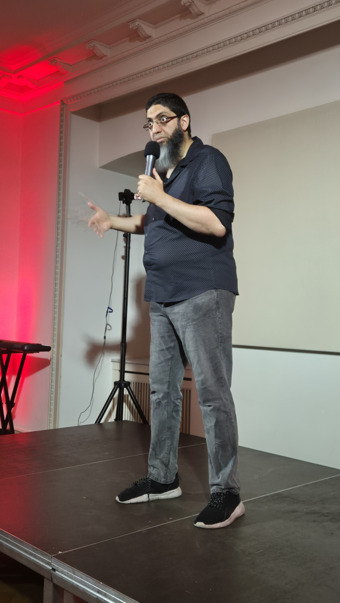 Mohammed Ibraheem Butt (“Ibo”) als Newcomer in der Stand-Up-Szene hatte die Lacher mit seinen schnellen Pointen und echtem Humor (“Ich spiele keine Rolle, sondern mich selbst”) zügig auf seiner Seite, als er das Publikum einweihte, dass er sich als Single-Moslem eine Frau wünsche, die ihm hinterherlaufe, ohne dass er ihr zuvor die Handtasche klauen müsse.